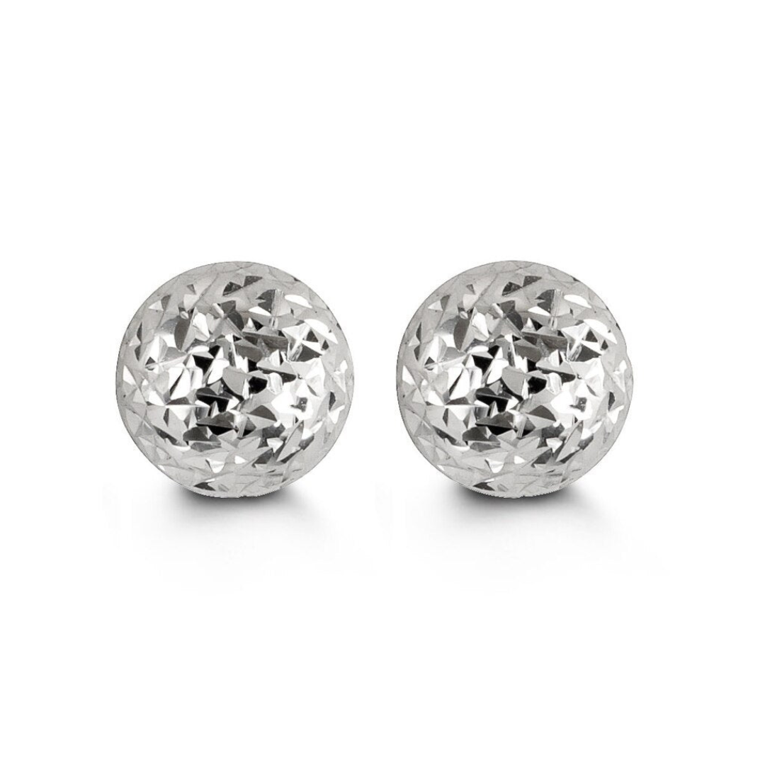 White Gold Huggie Earrings with Diamond Cut Finish (203925)
