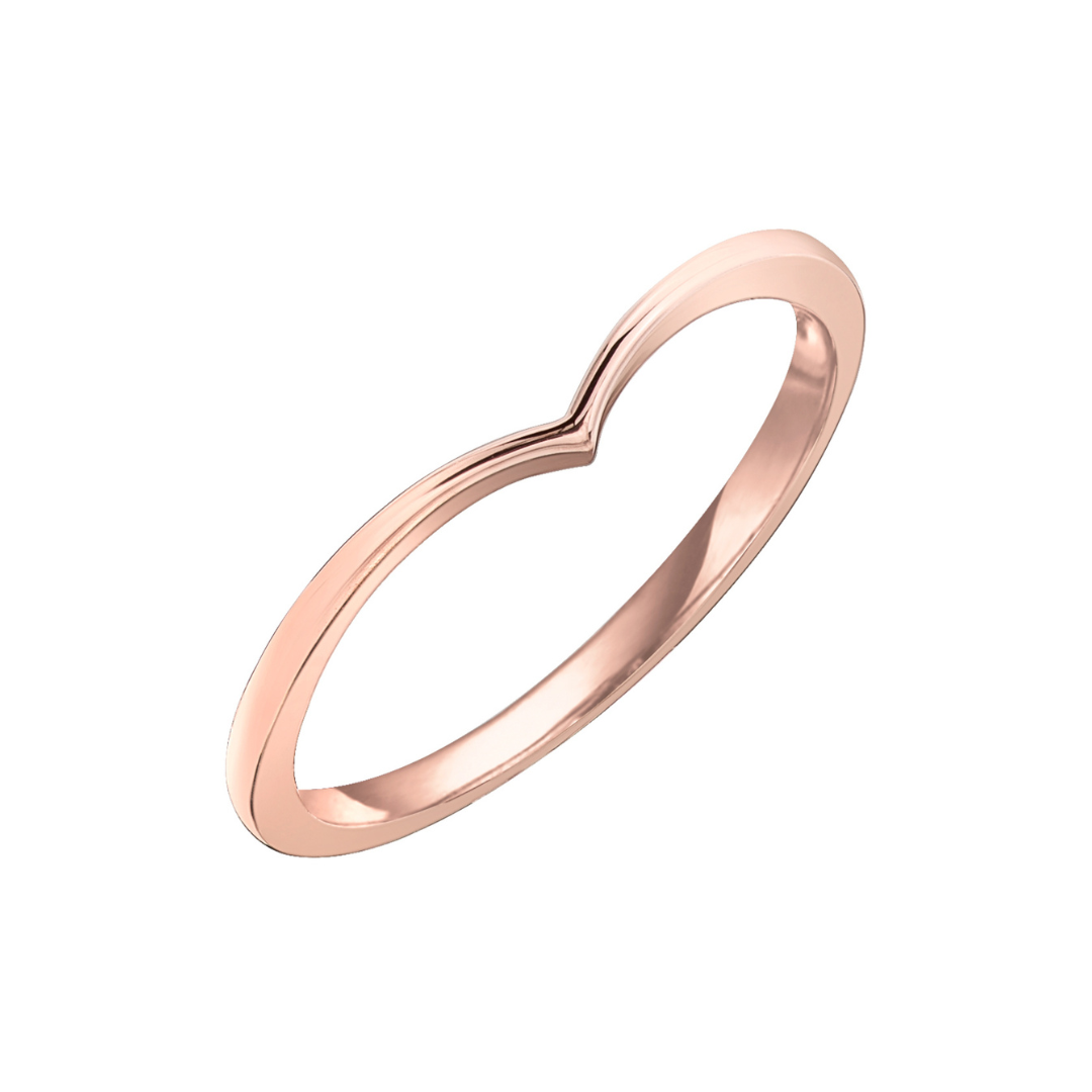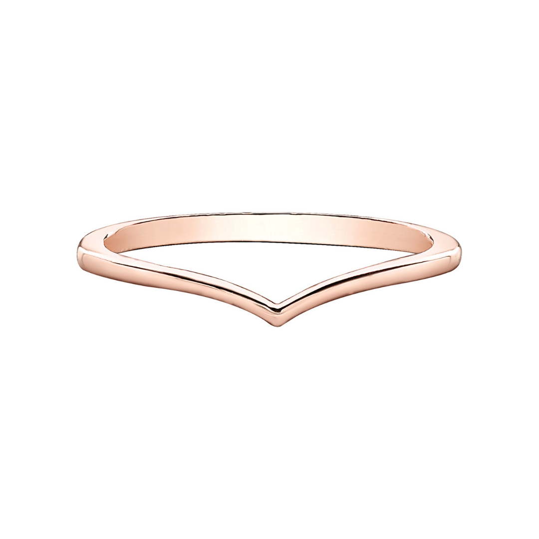 Rose gold chevron band with a high polish finish. Wear it alone, as a wedding band, or added to your stackable rings.