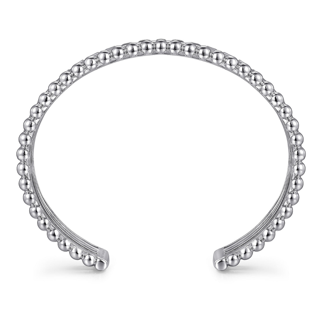 Add modern edge to your look with this Sterling Silver Bujukan and Pyramid Triple Row Bangle, featuring a striking combination of beaded, polished, and pyramid-textured rows. Crafted in sterling silver, this open cuff design offers bold dimension and versatile shine, making it ideal for stacking or standout solo wear. A must-have for those seeking a contemporary silver bangle with architectural elegance and everyday appeal.