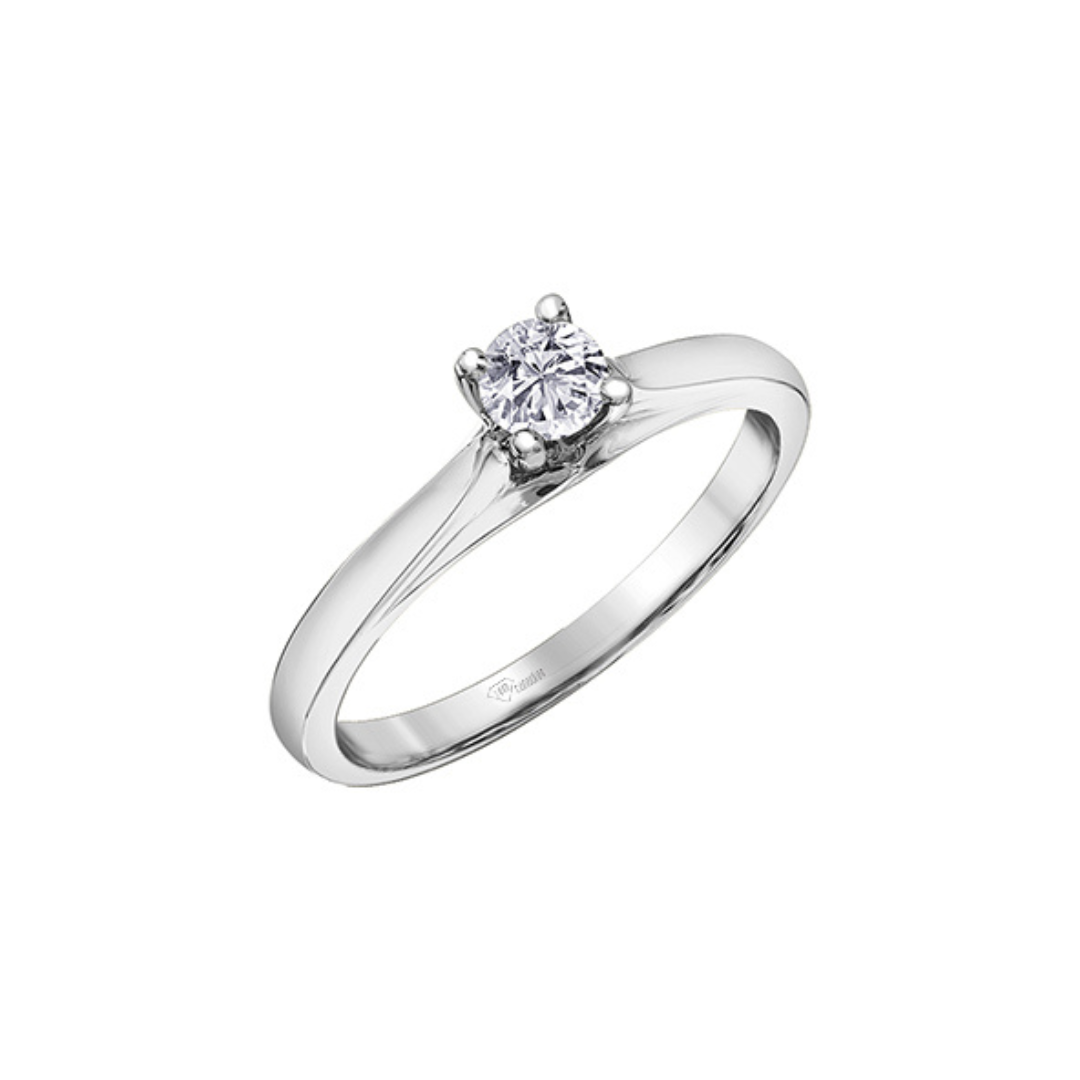 This refined engagement ring features a brilliant diamond set in a sleek white gold band, blending classic simplicity with exceptional craftsmanship. Its radiant sparkle and elegant design make it a perfect expression of lasting love and modern sophistication.