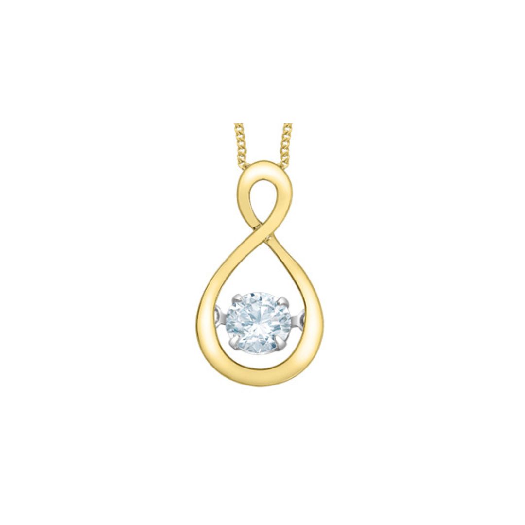 Celebrate timeless elegance with this infinity twist pendant crafted in radiant yellow gold. A brilliant round diamond floats gracefully at the center, symbolizing everlasting love and beauty. Perfect for everyday wear or special occasions, this pendant makes a meaningful gift for someone special.